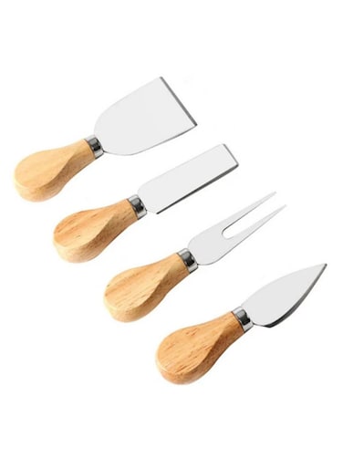 Generic 4-Piece Cheese Tool Set With Wooden Handle Silver/Brown