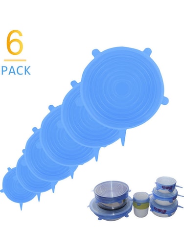 Generic 6Pcs Silicone Stretch Lids Reusable Lids Fit Various Sizes Food Saving Covers For Cups Bowls Cans Translucent Blue 21*4*21Cm