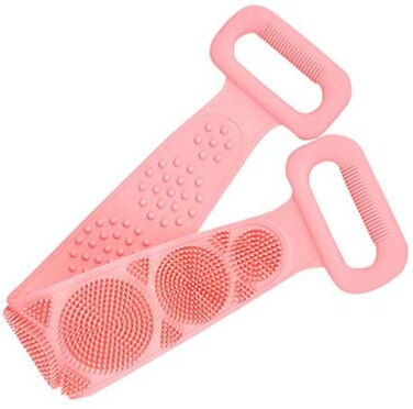 <li></b>Color:Pink<li>Bath Shower Silicone Body Brush Bath Belt Exfoliating Body Brush Belt Wash<li>Description:<li>Eco-friendly, durable, non-toxic, can effectively exfoliate and massage the skin.<li>Increased length to 60cm, and silicone has a telescopic function, making it easier to scrub the back<li>Hooks at both ends of the brush for easy hanging and storage, and easy to hold in the palm.<li>The silicone shower brush is composed of two sections with different thickness and the other side is an elliptical structure. You can scrub different parts of the body in the bath as needed<li>Size: 60¡Á11cm/23.62¡Á4.33"<li>Package included:<li>1¡ÁBody Brush