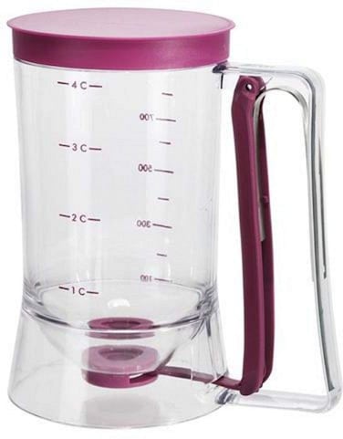 - <p>Made from durable, food-safe plastic</p><p>Batter dispenser helps you dispense the perfect amount of batter every time</p><p>Quick release handle</p><p>Includes measuring guide on the side</p><p>Great for pancakes, waffles, cupcakes and more</p><p>MAKE THE PERFECT CAKES, MUFFINS, PANCAKES AND MORE, WITHOUT THE MESS. DISPENSE THE PERFECT AMOUNT EVERY TIME. SIMPLY FILL THE WIDE OPENING DISPENSER WITH BATTER & PULL THE QUICK RELEASE TO RELEASE THE BATTER FROM THE OPENING. PERFECT CAKES & MUFFINS WITHOUT THE MESS!<p> Made from durable, food-safe plastic<p> Batter dispenser helps you dispense the perfect amount of batter every time<p> Quick release handle<p> Includes measuring guide on the side<p> Great for pancakes, waffles, cupcakes and more<p> Hand wash recommended</p><p>Batter Dispenser Model 612</p>