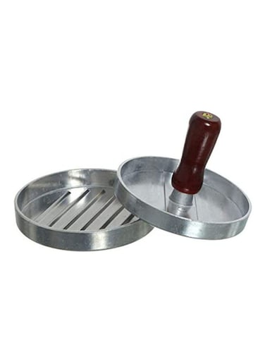 - Generic Burger Press Circular Shape With Wooden Handle, Silver