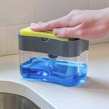 - <p>【EFFORTLESS DISPENSING WITH LARGE CAPACITY】-Holds up to 13 oz. of fluid. Dish liquid soap dispenser for Kitchen sink measurements: 5.1” x 4.2” x 3.2”<p>【SPEND LESS TIME WASHING UP】-We designed our soap dispenser to help reduce the time you spend at the kitchen sink. Effortless 1-hand dispensing operation allows you to wash dishes faster, whilst reducing the space taken up on your sink.<p>【ELIMINATE SINK CLUTTER】-Kitchen soap dispenser with attached caddy holds sponges, scrubbers, rags, scouring pads in one convenient place while keeping water of kitchen counters. No more messy spills, dripping, or trailing!<p>【CUTS OFF AFTER DEPRESS TO PREVENT WASTE】-Dispense the perfect amount of soap onto the sponge every time. Can help reduce wasted soap as you can always use a considered amount. Works with all kinds of liquid soaps.<p>【Dishes Done Faster】-No more stopping to grab the soap bottle. Any other sponge or scrubber will work with it too!<p>Color:Grey<p><p><p><p><p><p><p><p><p><p><p><p><p><p><p>Why choose Idealline dishwashing soap dispenser? <p> Dishes Done Faster-Cleaning dishes is about to get a whole lot faster with this soap pump sponge caddy NO Messy Spills, Dripping or Trailing-Unlike other manual and automatic dispensers, this dispenser cuts off the soap completely after pumping and prevents wasting of soap High-quality material-Made of unbreakable ABS plastic making it durable and corrosive resistant.