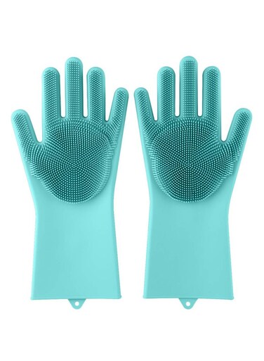 Generic Magic Silicone Gloves With Wash Scrubber Blue 32X16cm