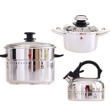 - Stainless Steel Kitchen 60 Minutes Timer Clock Teapot Shaped Manual Mechanical Clockwork Cooking Alarm Countdown Reminder