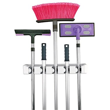 INOVERA (LABEL) Plastic Wall Mounted Mop and Broom Holder Storage Organizer, 44L x 6.5W x 7H cm (Grey)