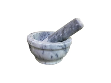 Granite mortar and pestle allows fine grinding of spices, herbs, and other ingredients.