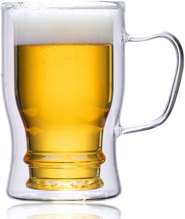 LUSHH Beer Glass Mug Insulated Mug,23 oz/650ml Double Wall Mugs Pub Glass for Cold Drink and Hot Coffee, Insulated Mugs Cup, Borosilicate Glassware Bar Glass Drinking Glasses.