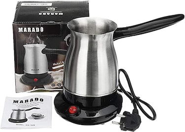 Marado High quality stainless steel Turkish Coffee Maker , Electrical Coffee Pot 500 ML/ 5 Cups. The Best and Most Efficient Way to Make a Warm Cup of Coffee or Tea and Boil Water.