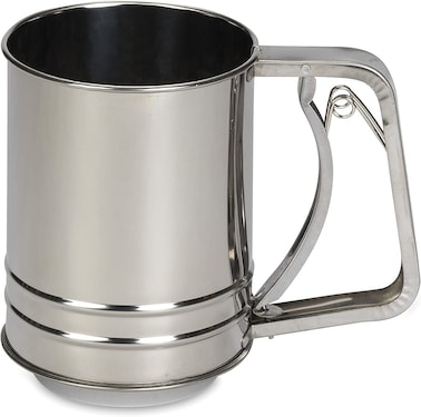 Patsies bake ware accessories is flour sifter, double mesh, holds 8-7/8 oz. Of flour. Made of good quality stainless steel, European design.