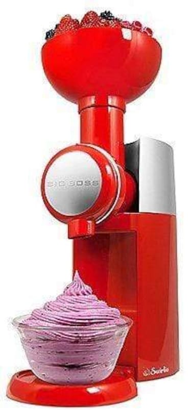 - Freeze your left-over fresh fruits and make nutritiousice cream-like dessert. Make individual servings and freeze for snack-time forlater. Makes delicious ice cream sandwiches too! · Please view the above tab for additional video on howto use your Swirlio! · Includes: · Main unit · Chute · Chute cover · Spiral grinder · Dispenser · Pusher · Bowl (for chute) · Adjustable tray · Recipe Book w/ 50 recipes · Easy to Use: · Freeze your fruit after all peels, stems and pits havebeen removed. Fruit needs to be frozen solid, which could take as long as 12hours. · Let the fruit thaw for 7 to 10 minutes before using. · Mix the slightly thawed fruit you want to include inyour dessert in a mixing bowl. · Insert fruit into Swirlio chute and make sure you havea dessert bowl placed below. · Turn on the Swirlio, press down the pusher and youhave a delicious, healthy treat!