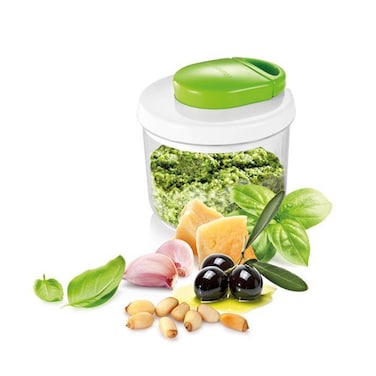 The Tescoma Handy Pull Chopper easily and quickly chops food to the required coarseness. Excellent for onions, root vegetables, tomatoes, herbs, apples, pears, nuts, sponge biscuits, for preparing fruit and vegetable salads, pesto,etc. It is made of resistant plastic with non-skid treatment, blade of high-grade stainless steel.