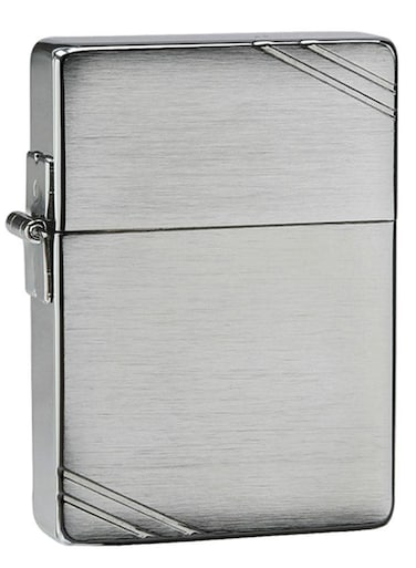 This Brushed Chrome windproof lighter features the 1935 Replica case. A three-barrel outside hinge joins the lid and bottom with an open hollow rivet that secures the flint wheel to the inside unit. This lighter features a flat bottom case and a unique bottom stamp. Comes packaged in a gift box. For optimal performance, fill with Zippo lighter fuel. Genuine Zippo windproof lighter with distinctive Zippo "click". All metal construction; windproof design works virtually anywhere. Refillable for a lifetime of use; For optimum performance, we recommend genuine Zippo premium lighter fuel, flints, and wicks. Made in USA. Fuel: Zippo lighter fuel (sold separately).