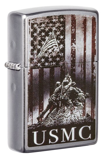 Honor the Marines and all of our troops who fought throughout the Pacific War with this U.S. Marine Corps lighter. Color imaged onto a Street Chrome™ lighter is one of the most iconic scenes in American History, Raising the Flag on Iwo Jima. Included in this design is the icon 1945 photograph of six Marines raising the US flag to signal victory during World War II with the American Flag in the background and USMC at the bottom. Comes packaged in a gift box. For optimal performance fill with Zippo lighter fuel. Genuine Zippo windproof lighter with distinctive Zippo "click". All metal construction; windproof design works virtually anywhere. Refillable for a lifetime of use; For optimum performance, we recommend genuine Zippo premium lighter fuel, flints, and wicks. Made in USA. Fuel: Zippo lighter fuel (sold separately).