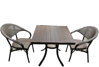 Generic Textilene Brown Chairs and Polywood Brown Square Table Set for Restaurant Furniture Set 3 Piece Dining Set Balcony Set