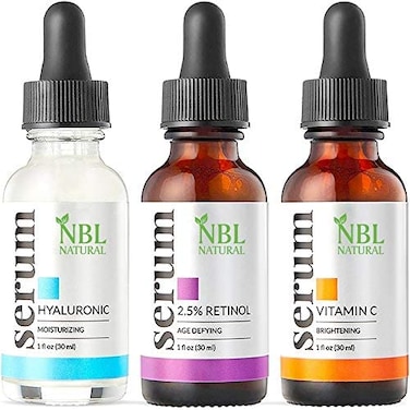 NBL Natural Anti Aging Set with Vitamin C Retinol and Hyaluronic Acid Serum for Anti Wrinkle and Dark Circle Remover All Natural and Moisturizing (3 x 30 ML)