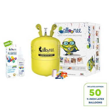 Balloonee Helium Tank - Jumbo Disposable Helium Party Kit - ( 50 Balloons ) with Floatee - Helium Balloons Float Time Extender 50ml