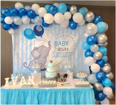 Bcarich Blue Balloon Arch Garland Kit With 100 Pcs Blue, White, And Silver Balloons, Decorating Strip And Glue Dots