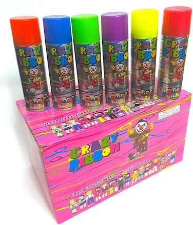Crazy Ribbon Kids Party Spray Colored String Spray For Party Celebrations And Decorations Box Of 24 -C2C