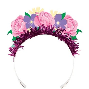 - Every little girl will feel like a princess when she wears the beautiful Floral Tea Party Tiara. The plastic tiaras measure 6" x 5" and feature beautiful flowers on a purple foil plastic headband. The tiaras coordinates with all Floral Tea Party party supplies.
