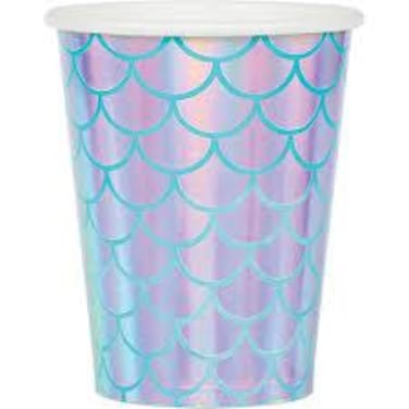 - ake a splash at your little one's birthday with the Iridescent Mermaid Party Cups. These 9 oz cups have a pastel iridescent design covered by mermaid scales. The cups complement other party supplies from the Iridescent Mermaid Party collection.