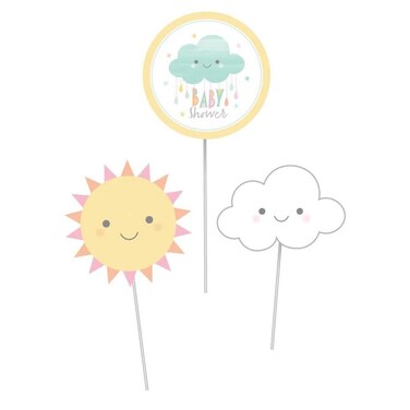 - Make the baby shower the talk of the town with this Clouds Hanging Decoration. Celebrate the upcoming arrival of a baby boy or girl by decorating your home with this hanging mobile that includes cutouts of smiling clouds and sunshine. The party enhancer coordinates well with other Clouds theme party supplies and accessories.