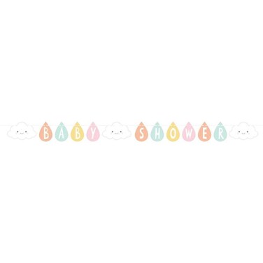 - Set a festive mood at the baby shower with this Clouds Ribbon Banner. The hanging decoration features colorful text reading "Baby Shower'' along with smiling clouds and is sure to impress guests. The ribbon banner pairs well with other Clouds party decorations.