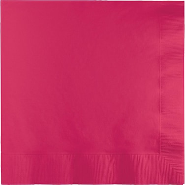 - Keep the celebration venue neat and clean while adding a pop of color with the Hot Magenta Luncheon Napkins displayed at get-togethers and catered events. Each durable 2-ply napkin measures 6.375 inches x 6.375 inches and each value package contains 50 napkins. Arrange these napkins next to individual place settings, close to a dinner buffet, or on the dessert table. Fan out a group of napkins and display them near snacks and appetizers for guests to use. The bright pink color is ideal for receptions, weddings and birthdays as well as other large celebrations and gatherings. The classy color coordinates with many printed theme collections for a marvelous accent.