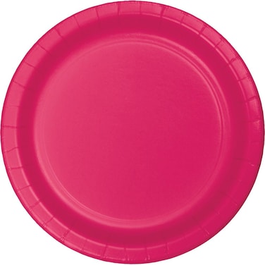 - Add energetic fashion and color to any larger gathering, catered event or trade show with the Hot Magenta Banquet Plates. The 10.25 inch round paper plate is sturdy enough for larger meals served at weddings, showers or birthdays and the bright pink color accents many printed theme ensembles.