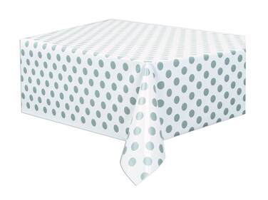 Unique Decorative Silver Dots Plastic Tablecover 54in X 108in