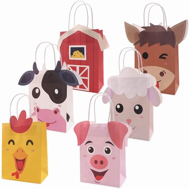 SUITABLE SIZE: As shown in the picture, all 12 Pack party gift bags with handles, each measuring 7.9"*5.9"*3.1".Perfect size for party favor gift bags, it can hold many gifts for kids who take part in your birthday party, barnyard themed parties and so on.