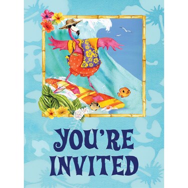 Flamingo Fun 8 Invite Postcard 6in X 4.5in