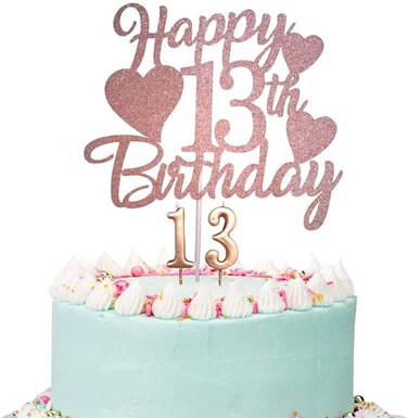 A Hit for 13th Birthday Party: Customized for 13th birthday cake decorations. These rose gold cake toppers and candles will be final touch to your birthday cake!