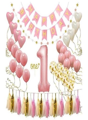 - <li>Bright colours sprucely coordinate with other party supplies and decorations<li>Attuned in maximum elasticity levelled design that makes the volume adjustable as per need<li>Safe to be used around children<li>Blow up evenly and seal tightly when inflated<li>Can be reused multiple time</br></br><li>Colour Name : Multicolour<li>Department : Baby Girls<li>Model Number : QQ004<li>Set Includes : Happy Birthday Banner, No.1 Balloon, Pink & White Star Garland , 4 X Pink And White Balloons, 7 X Gold Confetti, 7 X Marble Pink, 7 X Pink Balloons, 20 X Paper Tassels