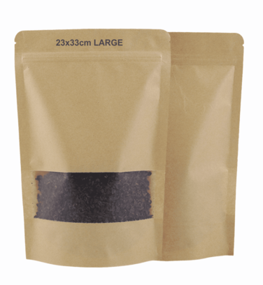 Generic Kraft Paper Bag With Reusable Zip Lock Sealing & Notch Matte Transparent Window (Pack Of 10 Pcs)