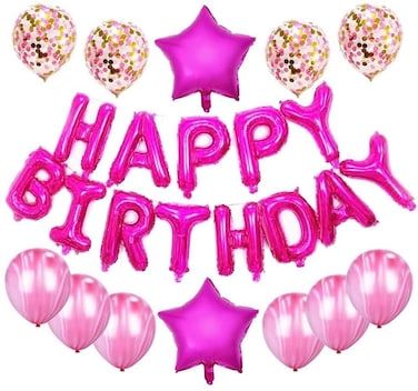 Haimimall Happy Birthday Balloons Set Rose Red-13Pcs Letters Balloons 2Pcs Giant Star Foil Balloons 4Pcs Confetti Balloons 12Pcs Latex Balloons Birthday Party Decorations And Supplies Ballons