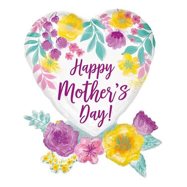 Happy Mothers Day Watercolour Heart SuperShape Foil Balloon