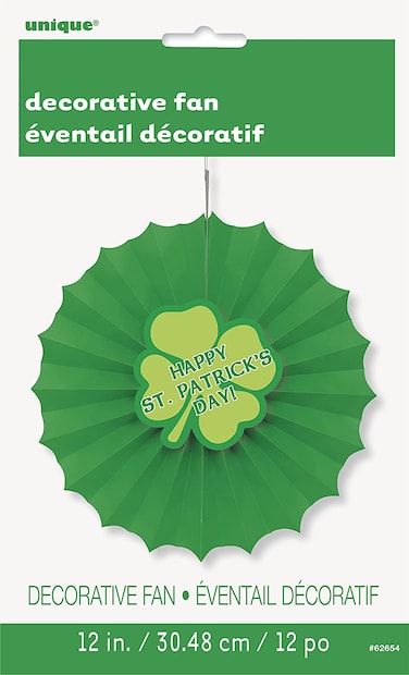 Unique Happy St. Patricks Day Paper Décor Fan 12in Printed 2 Sid