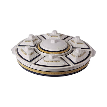 The Hoover Imperial Melamine Revolving Party Serving Set is perfect for hosting parties and serving food in style.