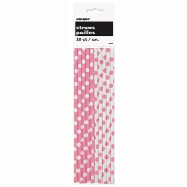 Hot Pink Deco Dot Paper Straws 10 pcs
