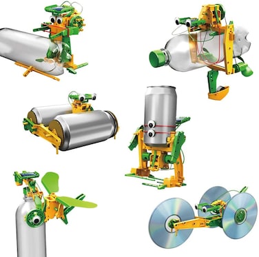 - The solar kit has 6 different fun-way models and movements which are easy to make up and utilize the recycled materials on the main structure. For example, you might find a drinking can to create a Street Roller and a Walking Robot or use empty PET bottles to build a Bottle Yacht, Drummer Robot and a Flying Bird.