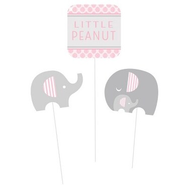 - Little Peanut party assortment features cute Mom and or baby elephants along with peanut shapes and stripes in pink or blue on a gray background.Coordinates with classic pink or Pastel Blue solids.