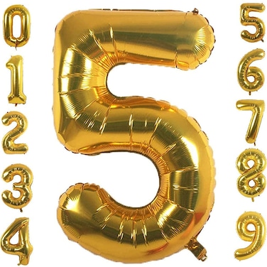 Markq 40 inch Number Balloons, Large Gold Foil Helium Balloons for Anniversary Wedding Birthday Party Decoration Supplies (Number 5)