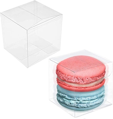 Markq Clear Favor Boxes 8x8x8 cm, 12 pcs PVC Transparent Box for Gifts Macaron Cupcake Candy Cookies Ornament Gifts Wedding Party Baby Shower (Gold Base)
