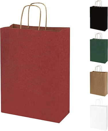 Markq Maroon Paper bags with handles 27 x 22 x 11 cm Large Kraft Gift bags for Birthday Party Favors, Weddings, Retail, Baby Shower (12 Bags)