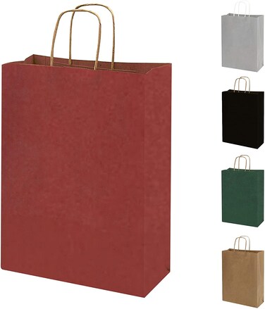 Markq Maroon Paper bags with handles 33 x 26 x 12 cm Large Kraft Gift bags for Birthday Party Supplies, Weddings, Shopping, Presents (12 Bags)