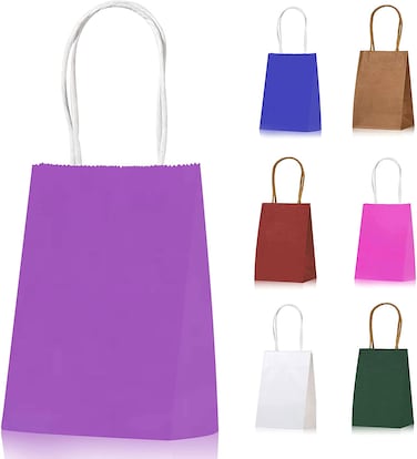 - <p>INCLUDES - 24 piece of 15 x 11 x 6 cm small purple paper gift bags<p>ECO FRIENDLY - Our party bags are made with eco-friendly biodegradable material. They can be recycled, reused and composted.<p>HIGH QUALITY - Our paper bags with handle is made of kraft paper, strong and not easy to tear. The sturdy handle makes this bag better load-bearing than ordinary single-layer gift bags.<p>CUSTOMIZABLE - Personalize the bags to make them uniquely yours. it’s simple for you to add your own creative touch. Use ink stamps, cutouts, watercolors, drawings, stickers, or anything else you can think of.<p>Product Dimensions: <p>Product Description:<p><p>Color:PURPLE , Size:15 x 11 x 6 cm<p>Key Features: Extra thick bag with handles Recyclable and bio-degradable Multi-purpose bags that can be used as holiday gift bags, party bags, shopping bags, retail bags, merchandise bags, wedding welcome bags and more. <p>Specification: Made in: UAE Brand name: MARKQ <p>Package Included: 24 Gift bags Size: 15 x 11 x 6 cm <p>Color: Purple <p>Disclaimer: Despite every effort to provide accurate images of each product's color and size, actual color and size may vary slightly due to different device screen settings, the lighting in the installation location, slight differences in product finishes over time, and other factors