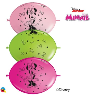 - Qualatex Minnie Mouse Printed Qlink Party Banner Balloons have a special shape with an elongated end with the help of which the balloons can be tied together. By tying balloons together, you can create beautiful balloon decorations like chains, garlands, gates, flowers and other decorations. Inflatable connecting balloon decorations will decorate a birthday party, wedding, graduation party, dance party and other social events. You can mix and match with other colours or prints for a beautiful bouquet. It is made of super elastic and 100 percent natural biodegradable latex material. Approximately 12-inch diameter when properly inflated. The balloons can be filled with air or helium, but will require helium to float. This pack includes 10-pieces of latex balloons. Comes in assorted colour.