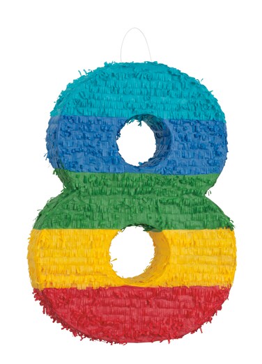 - Our Number 8 Pinata comes in the shape of the numeral 8, and is ready to fill with up to 2 pounds of your own candy and party favors. Celebrate your son or daughter's 8th or 18th birthday with our Number 8 Pinata. Before the classic party game begins, this pinata also serves as a fun 8th birthday party decoration. Combine the Number 8 Pinata with our other numeric pinatas to celebrate an even bigger milestone (18th or 80th).