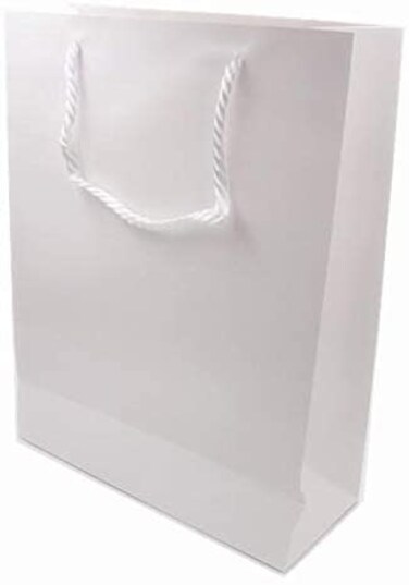 - White colour gift paper bags Each size: 262111cm 12pcs in one package Ideal for writing & drawing on bag Using in party to distribute gifts</br></br><li>white paper gag<li>gift paper bag<li>12pcs sell in one package<li>262111cm