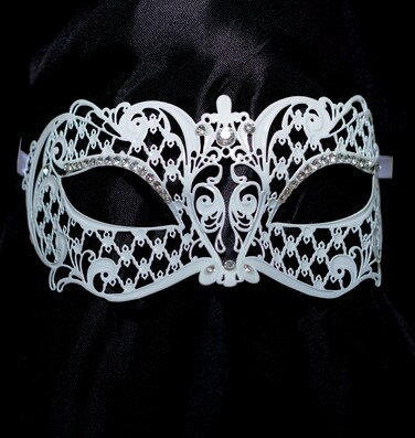 - This mask is part of our Exclusive Limited Edition line of Venetian Masks. -High quality mask created with laser-cutting technology design work. -Detailed with intricate Modern Venetian inspired designs. -Extravagant diamonds are beautifully encrusted on the high points of the mask to provide an elegant touch. -Mask is carefully hand-made with the finest quality and eco-friendly materials. -Mask is secured with two quality ribbon ties for easy wear and adjustment. -Created with very light-weight quality materials for long hours of comfortable wear. -Excellent choice for Prom, Wedding, Fashion Shows, Mardi Gras, Costume, Dance Parties, Mask Events & More.